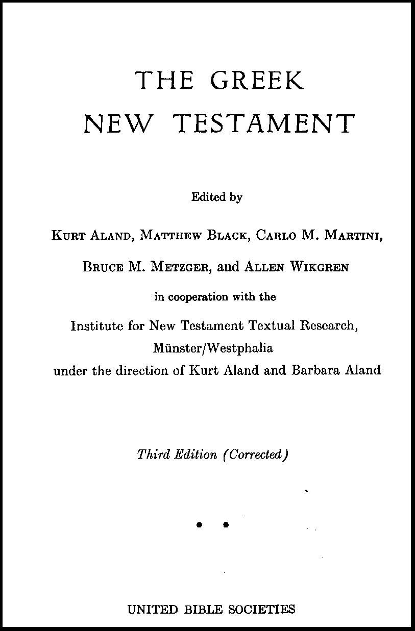 La troisième édition du texte grecque de l'Alliance biblique universelle.