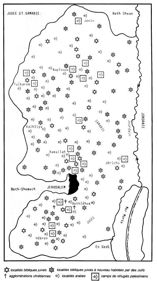 Les 90 000 colons juifs de Judée-Samarie sont répartis en 105 implantations, dont les principales sont: