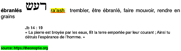 - Celui qui fuit devant les cris de terreur tombe dans la fosse, Et celui qui remonte de la fosse se prend au filet; Car les écluses d'en haut s'ouvrent, Et les fondements de la terre sont ébranlés.
