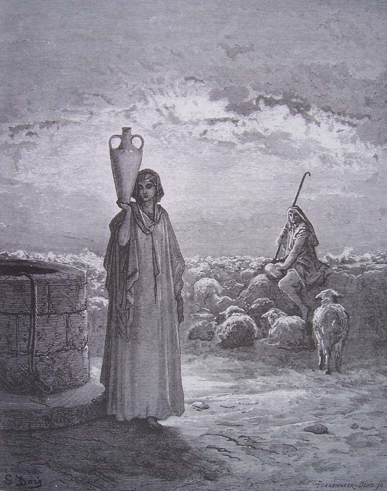 - Comme son séjour se prolongeait, il arriva qu'Abimélec, roi des Philistins, regardant par la fenêtre, vit Isaac qui plaisantait avec Rebecca, sa femme.