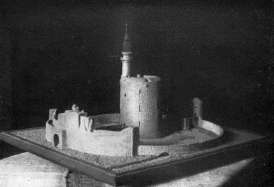 (Cliché Musée du Désert). REPRODUCTION DE LA TOUR DE CONSTANCE, AVEC LA DISPOSITION DES MURAILLES D'ENCEINTE TELLES QU'ELLES EXISTAIENT ENCORE AU XVIIIe SIECLE